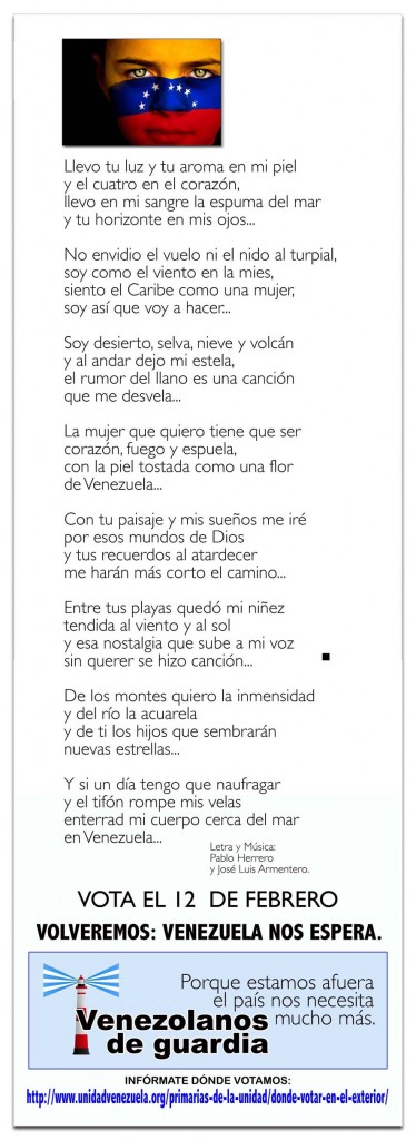 InicioPrimarias ExteriorUnidos en el exterior: piensa con el corazón Unidos en el exterior: piensa con el corazón Por admin febrero 7, 2012 Primarias Exterior 0 comentarios Etiquetas:democracia, elecciones, participación, voto exterior Entradas relacionadas El 4-F Juramentacion de Miembros y testigos en Primarias Unidad en Miami Instalada mesa electoral en Sao Paulo Felicitaciones Sobre el autor admin